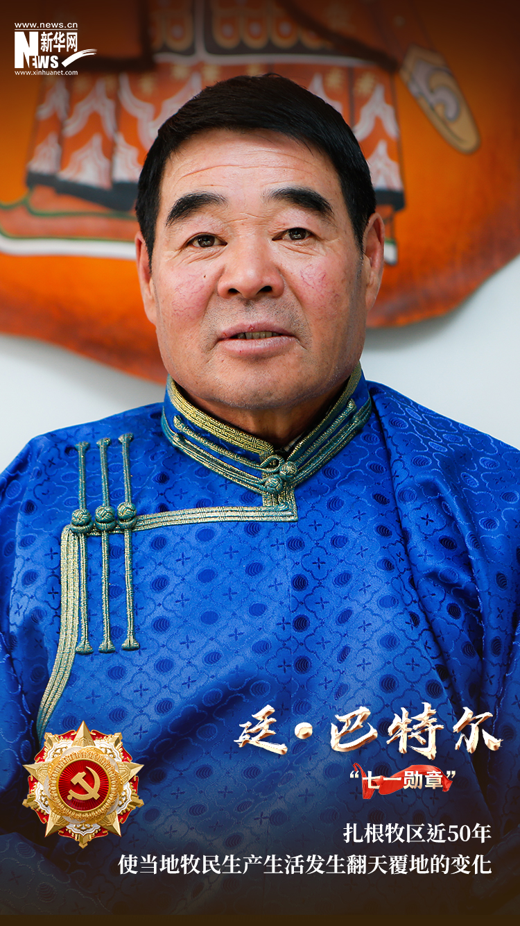 他是廷·巴特爾,內蒙古自治區錫林郭勒盟阿巴嘎旗洪格爾高勒鎮薩如拉圖雅嘎查原黨支部書記,不久前獲得了代表黨內最高榮譽的“七一勛章”!霸羺^、苦干實干的楷模,投身邊疆牧區建設40多年,探索出保護生態、發展經濟、促進增收新路子,使當地牧民生活發生積極變化”,道出了這位“草原的孩子”為牧民群眾所做的實事。