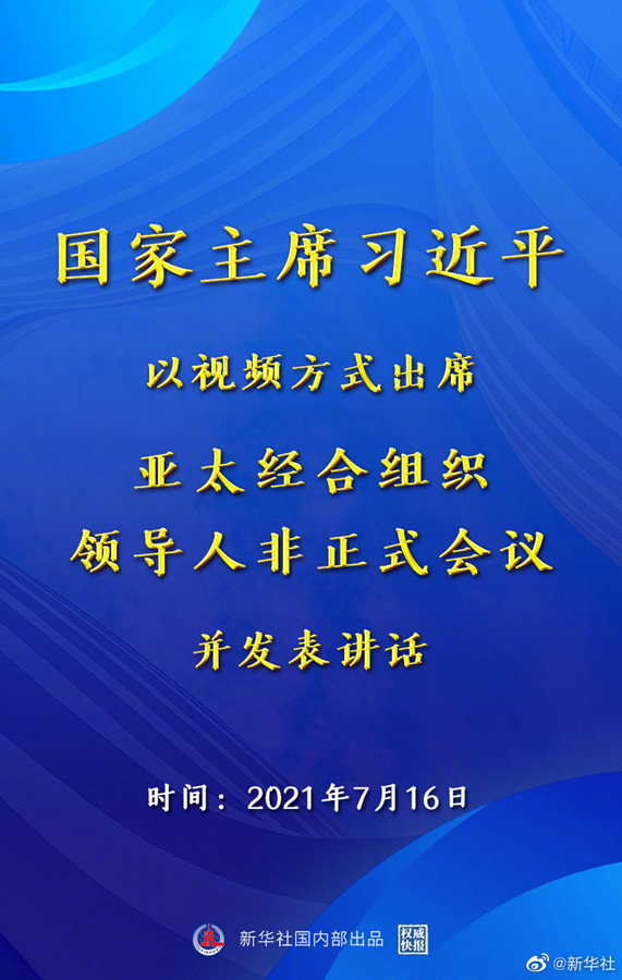 7月16日晚,國家主席習近平應邀在北京以視頻方式出席亞太經合組織領導人非正式會議并發表講話。