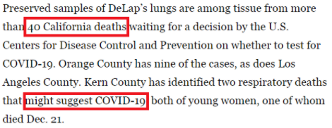 《洛杉磯時報》去年6月21日報道稱,加利福尼亞州最早可追溯至2019年12月的40余起不明死亡病例或?qū)⒏膶懶鹿诜窝滓咔樵诿绹臅r間線。