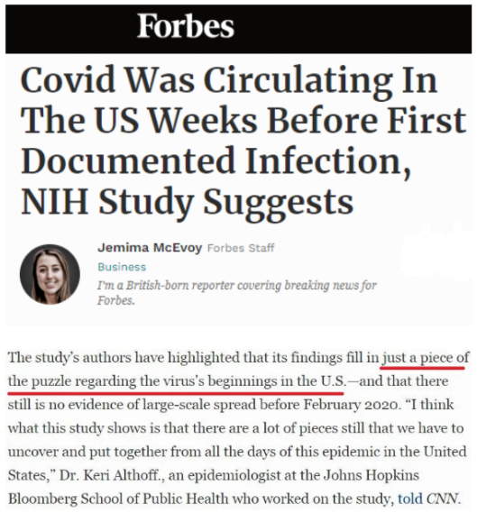 就在上個月15日,美國國立衛(wèi)生研究院(NIH)最新公布的研究結(jié)果支持了CDC的研究發(fā)現(xiàn):新冠病毒早在2019年12月就已在美國傳播。