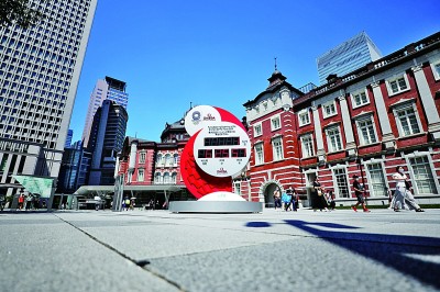 圖為7月22日在東京車站前的廣場(chǎng)上拍攝的東京奧運(yùn)會(huì)倒計(jì)時(shí)電子時(shí)鐘。新華社發(fā)
