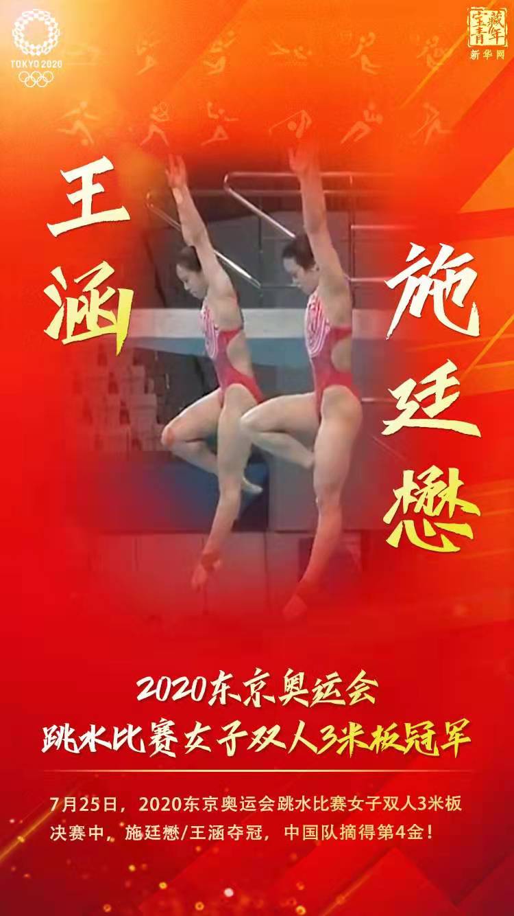 快訊:中國組合施廷懋/王涵奪得東京奧運會女子雙人3米跳板冠軍。