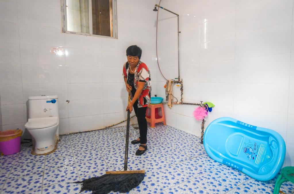2019年9月10日,河北省永清縣三圣口鄉第四村村民在自家廁所打掃衛生。新華社記者 李曉果 攝