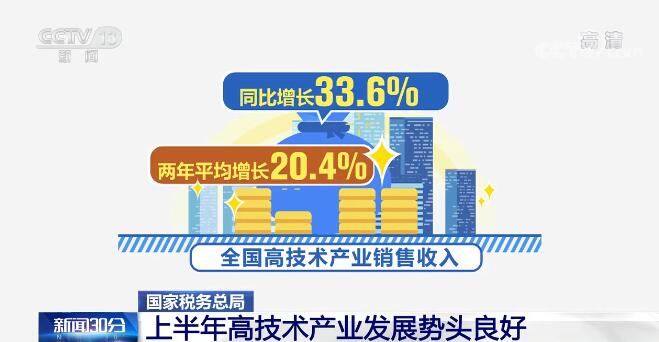 不僅如此,今年上半年,隨著創新驅動發展戰略深入推進,全國高技術產業銷售收入同比增長33.6%,兩年平均增長20.4%。