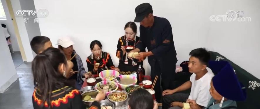 一大早,在中壩社區九組的易地扶貧搬遷集中安置點,克惹合體的孫女正在為今天火把節上的比賽節目進行排練。一年前,克惹合體一家告別土坯房,搬進這里的兩層小樓,今天他格外開心,因為女兒、女婿都趕回來過節了。為此,他提前就把自家40頭羊的放羊工作拜托給了別人,自己一早就換上了彝族盛裝。