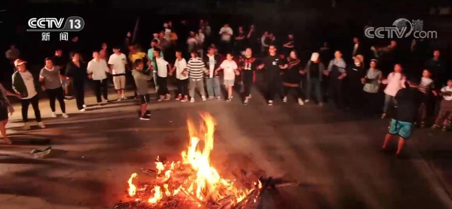 隨著夜幕降臨,漆黑的夜空被火光點亮,寧靜的夜晚也被歡呼聲打破,人們歡聚一堂,用一把把火把傳遞著對未來美好生活的期待。
