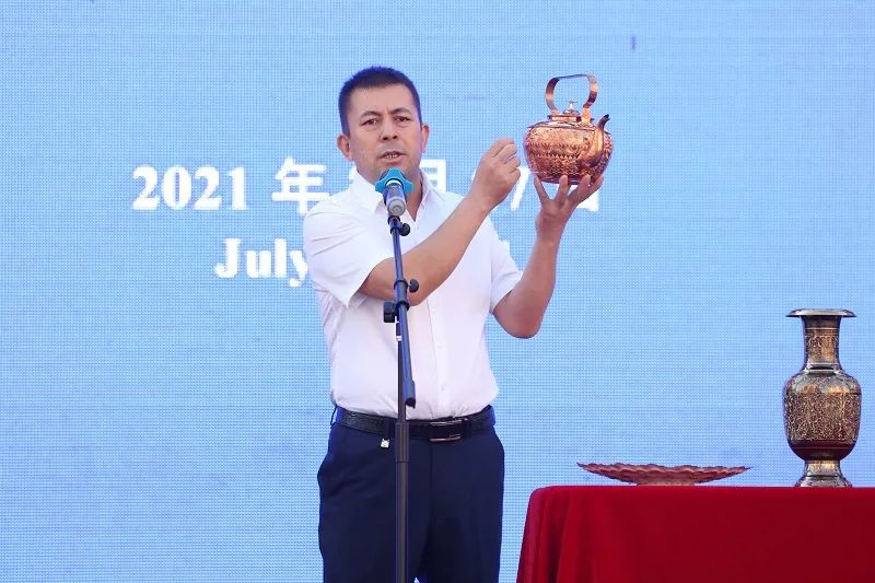 今年6月,喀什維吾爾族銅器制作技藝被確定為國家級非物質文化遺產代表性項目。今天,在新疆國際大巴扎經營手工銅器的蘇來曼·麥麥提敏來到新疆維吾爾自治區在新疆國際大巴扎舉行的專場新聞發布會上講述了他現在的幸福生活。