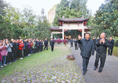 2021年3月22日至25日,中共中央總書記、國家主席、中央軍委主席習近平在福建考察。這是22日下午,習近平在南平武夷山朱熹園考察時,向游客招手致意。新華社發(fā)