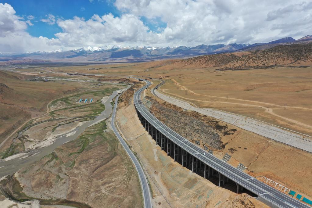 圖為京藏高速那曲至羊八井段那曲河特大橋(2021年6月29日攝)。 新華社記者劉洪明 攝