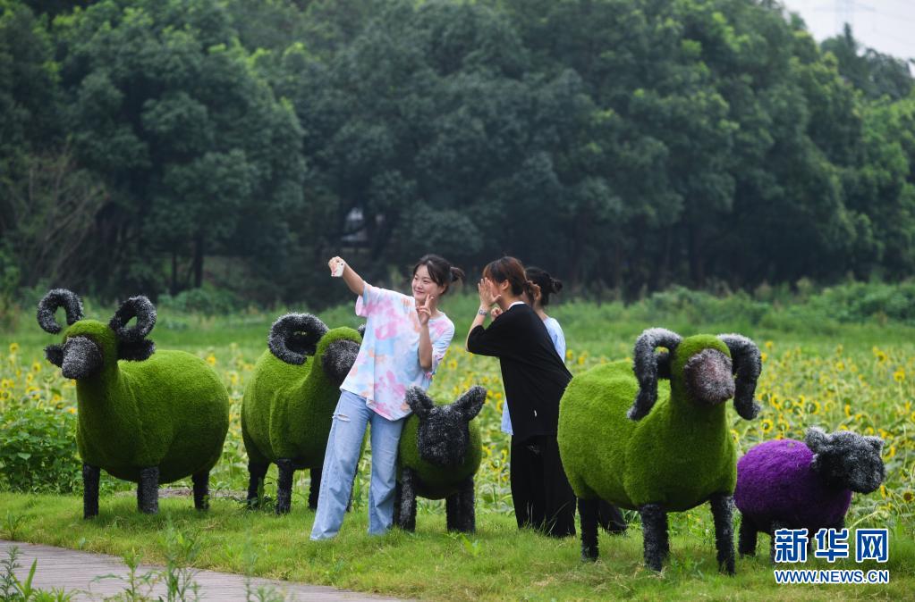 8月10日,幾名游客在南山村特色度假小鎮(zhèn)的向日葵花田旁自拍留影。
