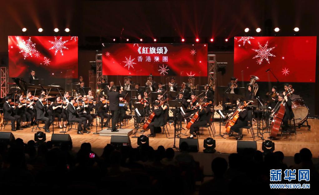 8月14日,香港樂團在音樂會上演奏《紅旗頌》。新華社記者 吳曉初 攝