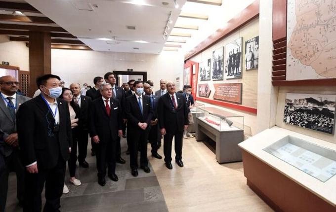 6月3日,阿拉伯國家駐華使節(jié)及阿盟駐華代表處代表等在西柏坡紀(jì)念館參觀。新華社記者 王曉 攝