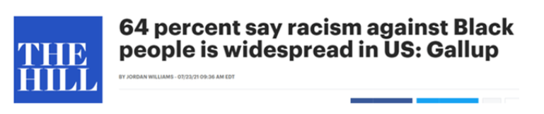 由于黨爭不休,時至今日,在是否承認美國存在種族主義、是否應采取措施應對種族主義等問題上,美國的社會撕裂絲毫未見彌合,近期的一項蓋洛普民調顯示,64%的美國人認為美國普遍存在針對黑人的種族歧視。