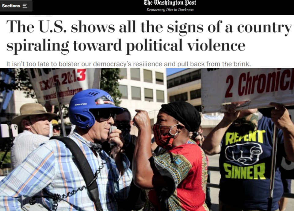 △《華盛頓郵報》:美國顯露出一個國家走向政治暴力的所有跡象。