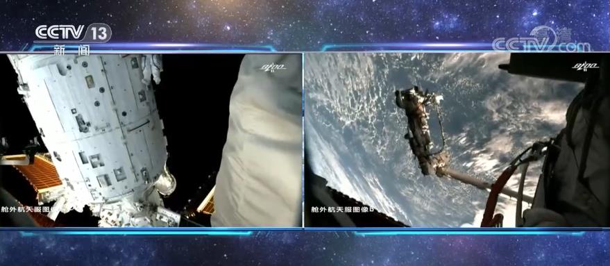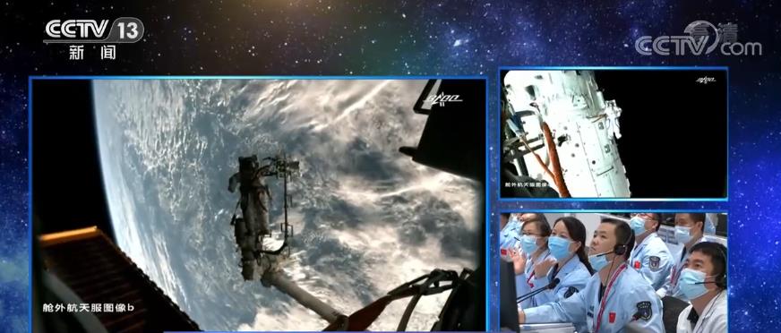 央視網(wǎng)消息:在今天(8月20日)的中國空間站航天員第二次出艙活動中,通過我們的獨(dú)家畫面,我們也見證了航天員在太空的互拍,當(dāng)時(shí)劉伯明幾乎是掛在空間站上,聶海勝站在了他前方的機(jī)械臂上,背景是藍(lán)色的地球。到底有多酷炫,一起來欣賞一下。