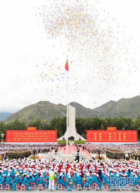 8月19日,在慶祝西藏和平解放70周年大會上,彩色氣球騰空而起。 當日,西藏各族各界干部群眾2萬多人歡聚在拉薩布達拉宮廣場,熱烈慶祝西藏和平解放70周年。 新華社記者 黃敬文 攝