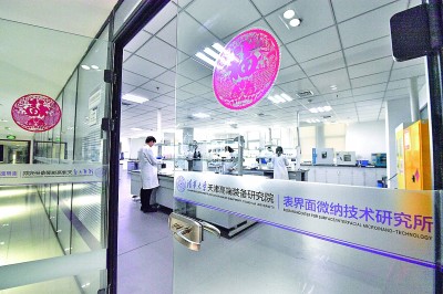 在清華大學天津高端裝備研究院表界面微納技術研究所,實驗人員在工作中。新華社發