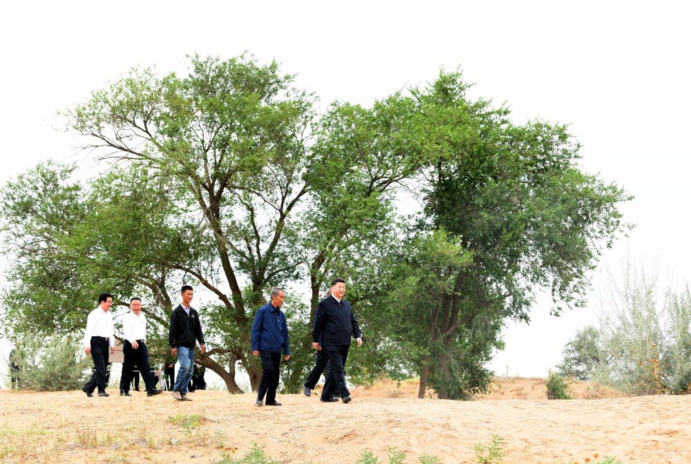 ↑2019年8月21日,習近平來到甘肅武威市古浪縣八步沙林場,實地察看當地治沙造林、生態保護等情況。