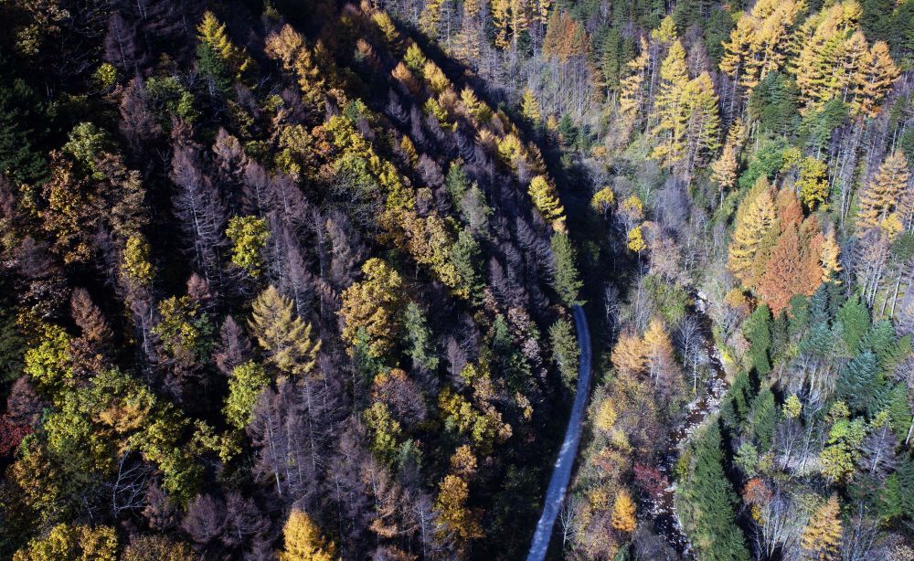 ↑秦嶺秋景(2018年10月26日攝,無人機照片)。