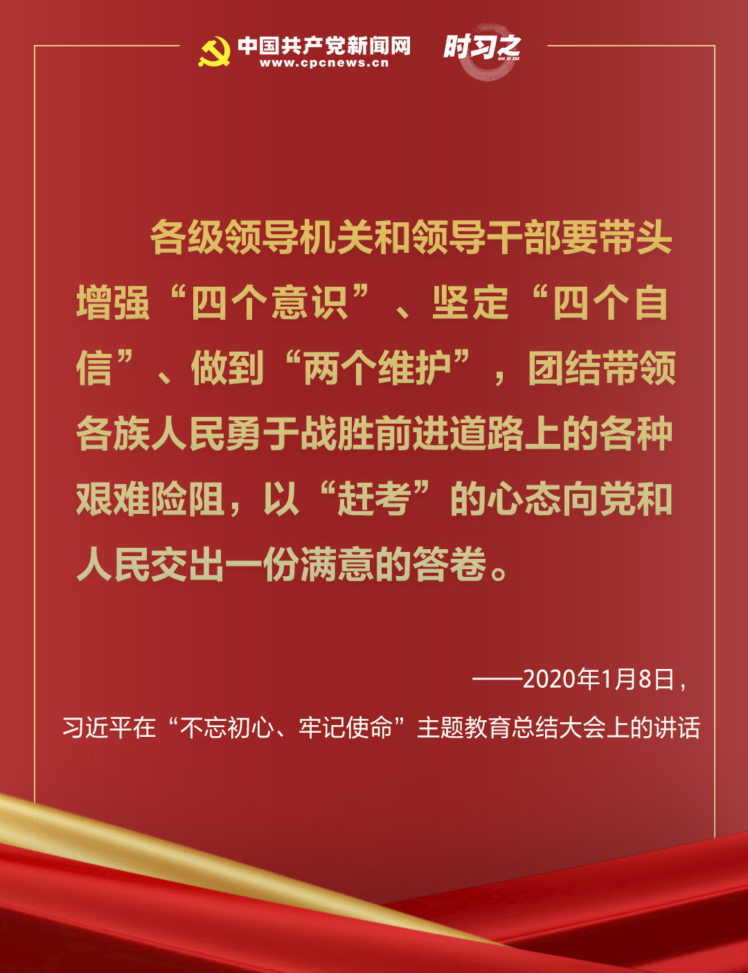 “全體中國共產黨員!黨中央號召你們,牢記初心使命,堅定理想信念,踐行黨的宗旨,永遠保持同人民群眾的血肉聯(lián)系,始終同人民想在一起、干在一起,風雨同舟、同甘共苦,繼續(xù)為實現(xiàn)人民對美好生活的向往不懈努力,努力為黨和人民爭取更大光榮!”習近平總書記句句鏗鏘,發(fā)出新時代的前進號召。