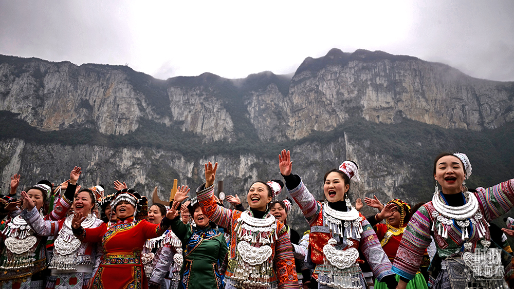 △今年2月,習近平來到貴州化屋村考察,當地村民用歡快的苗家歌舞迎接總書記。(總臺央視記者王哈男拍攝)