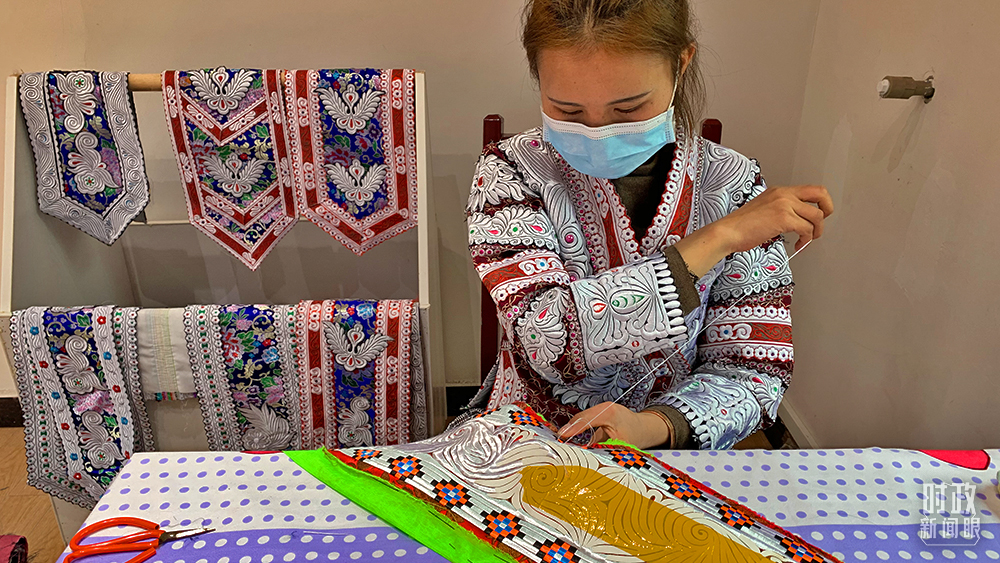 △苗繡是貴州化屋村的傳統文化,更是推動鄉村振興的特色產業。(總臺央視記者段德文拍攝)