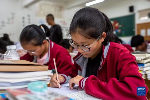 寧蒗寧海民族中學(xué)海安4班的學(xué)生在教室里上課(8月25日攝)。新華社記者 胡超 攝