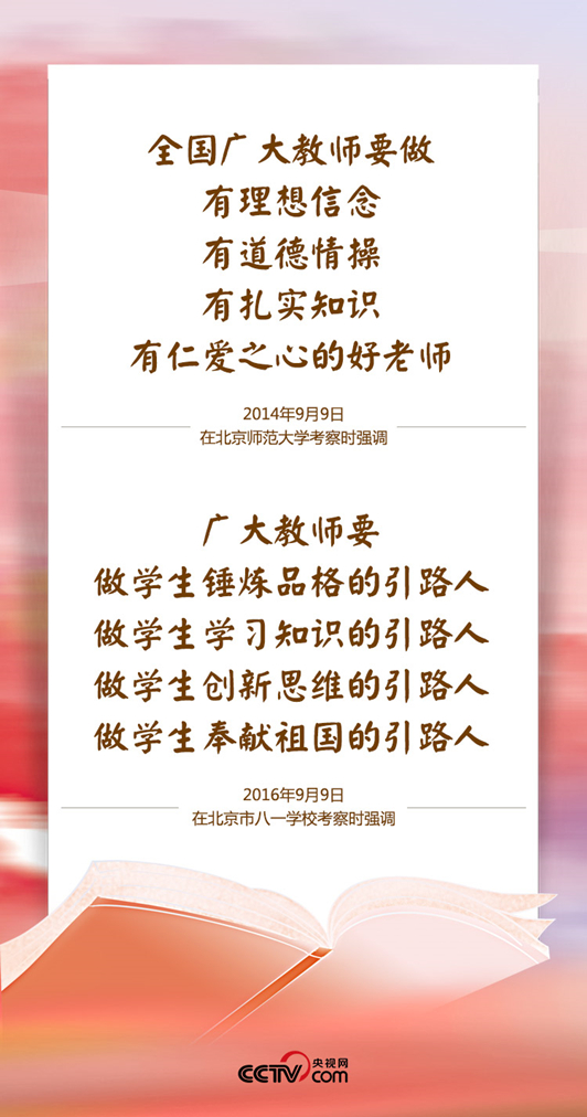 三尺講臺(tái)系國(guó)運(yùn),殷殷囑托促前行。又到教師節(jié),讓我們與總書記一起,向1700多萬(wàn)“筑夢(mèng)人”致敬!
