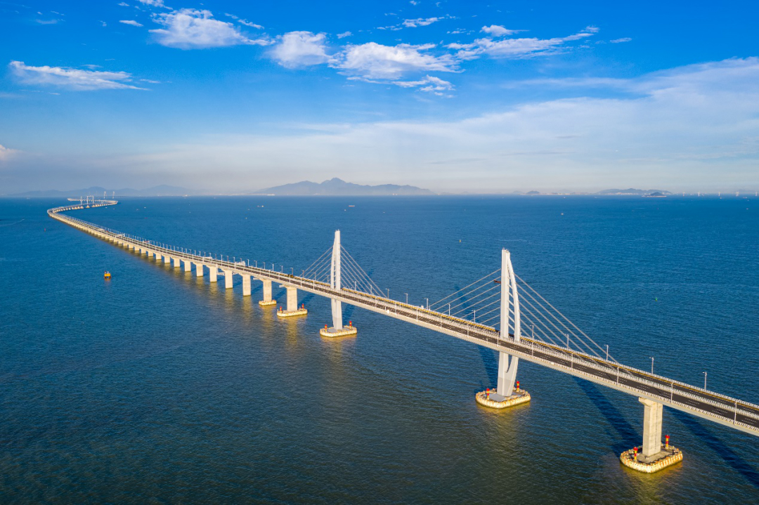 △港珠澳大橋全長(zhǎng)55公里,是世界上最長(zhǎng)的跨海大橋。