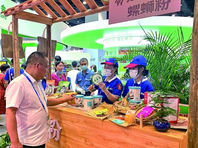觀眾在螺螄粉展臺前咨詢。本報記者 藺紫鷗攝/光明圖片