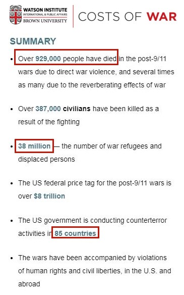 美國自身也損失慘重:超過7000名美軍人員以及超過8000名美軍雇員命喪阿富汗、伊拉克等異國他鄉,全部戰爭支出高達8萬億美元。