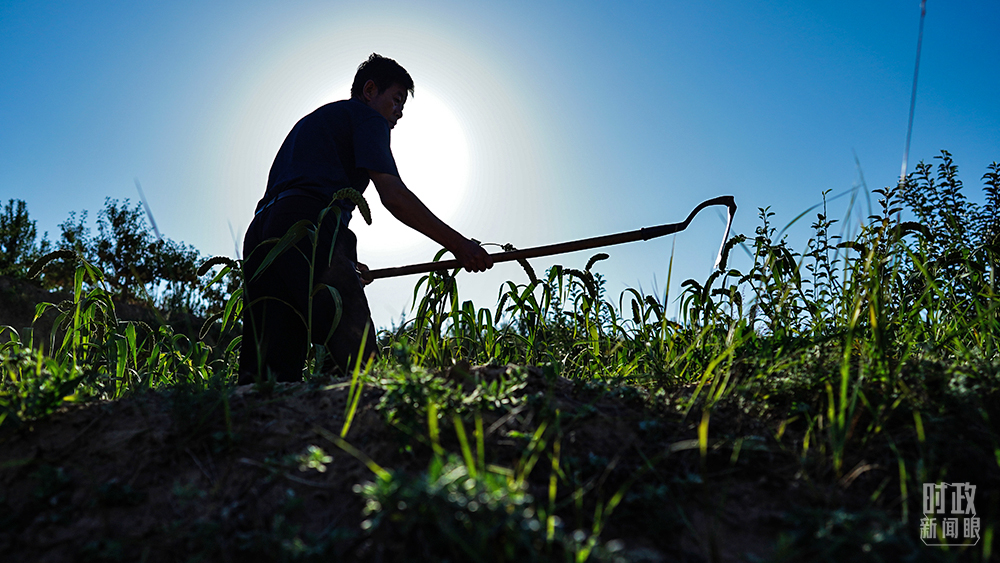 △高西溝村民正在谷子地除草。(總臺國廣記者李晉拍攝)