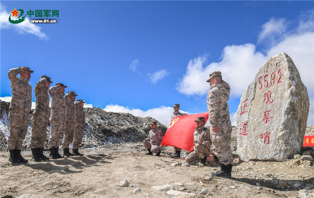 5592觀察哨官兵學(xué)習(xí)完回信后,面對(duì)黨旗鄭重承諾,為祖國站好崗、守好邊。陶云波 攝