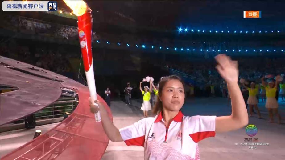 9月15日20時,第十四屆全運會開幕式在西安奧體中心體育場舉行。經過連續6次傳遞,在東京奧運會上為中國代表團贏得首枚金牌的年輕射擊運動員楊倩最終點燃圣火。