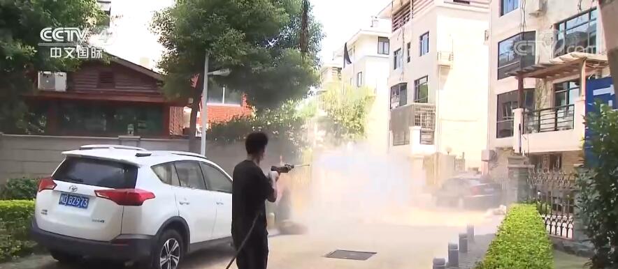從9月19日起,廈門小區重點公共區域已開啟每日至少兩次消殺工作。在廈門市集美區古龍明珠小區記者看到,物業工作人員正在使用高壓沖洗消殺兩用機,消毒架空層、過道等區域。