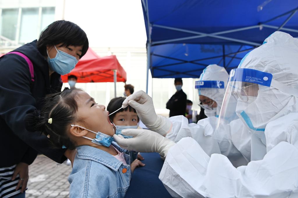 9月23日,在哈爾濱市香坊區一核酸檢測點,小朋友進行核酸檢測。新華社記者王建威攝