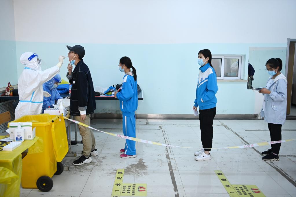 9月23日,在哈爾濱市香坊區一核酸檢測點,市民在排隊進行核酸檢測。新華社記者王建威攝