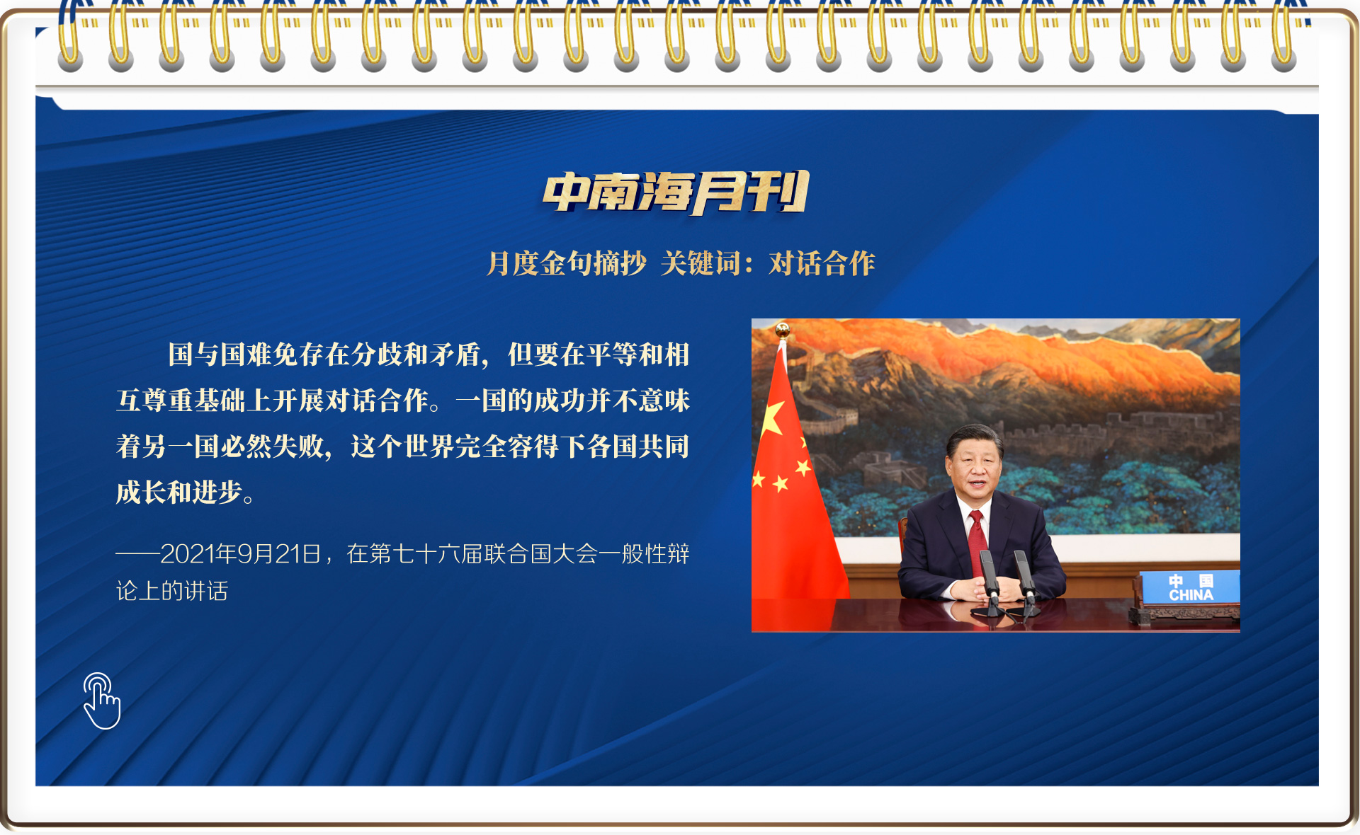 9月,一個個瞬間令人難忘:在中青年干部培訓班上講授“開班第一課”;在田間地頭同陜北老鄉拉家常;在革命舊址追憶革命歷史;在第七十六屆聯合國大會一般性辯論、上海合作組織成員國元首理事會第二十一次會議等國際場合闡述中國主張、出席烈士紀念日向人民英雄敬獻花籃儀式深情瞻仰人民英雄紀念碑……