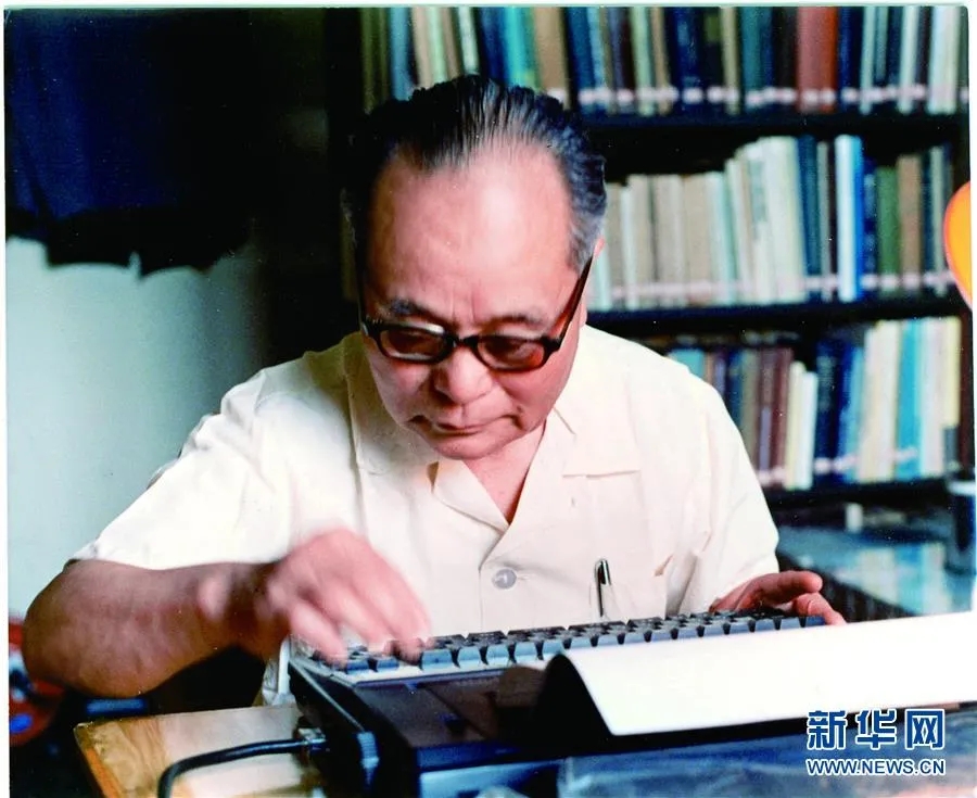 程開甲在打字機上撰寫論文(資料照片)。新華社發
