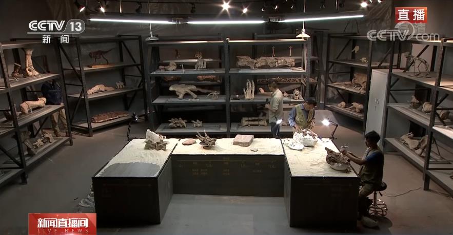目前2號科考現場的恐龍化石骨架,整體面貌已經顯現,那之前出土的1號科考現場的恐龍化石修復工作進行到哪一階段了?來連線正在恐龍化石修復中心的總臺央視記者張藝瑾。