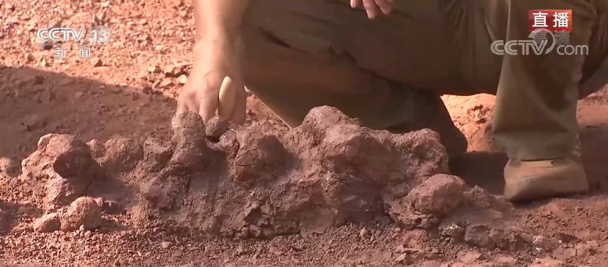 先來關注2號科考現場。在昨天(10月4日)的工作中,恐龍化石的尾椎部分已經逐漸顯露出來,我們也通過專家的介紹,了解了恐龍尾巴的作用。今天現場工作進入了“啃硬骨頭”階段,會有什么樣有趣的發現呢,馬上來連線總臺央視記者趙曙光。