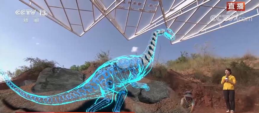 為了能夠更好地呈現科學發現的細節,也為了讓您更能身臨其境感受侏羅紀世界,我們在前方也特別搭建了沉浸式混合現實系統,在科考現場就能實時看到根據骨骼化石復原的恐龍模樣,實現野外互動直播。一眼穿越億萬年。
