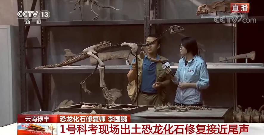 看完了恐龍愛吃的食物,我們再把目光轉向修復現場。昨天的報道中,恐龍化石修復師向我們介紹了如何給頭骨缺失的恐龍配一個人造頭骨,今天修復工作進入攻堅階段,修復師要從“頭”到“尾”,修復又細又脆的恐龍化石的脈弧部分。攻堅的難點是什么,技藝高超的化石修復師又是如何一一化解的,來連線正在前方的總臺央視記者張藝瑾。