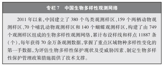 中國堅持在發(fā)展中保護、在保護中發(fā)展,提出并實施國家公園體制建設和生態(tài)保護紅線劃定等重要舉措,不斷強化就地與遷地保護,加強生物安全管理,持續(xù)改善生態(tài)環(huán)境質量,協同推進生物多樣性保護與綠色發(fā)展,生物多樣性保護取得顯著成效。