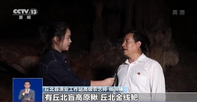 丘北縣漁業工作站高級農藝師 楊洪福:有丘北盲高原鰍、丘北金線鲃,它們都是國家二級保護動物。由于長期在黑暗中生活,它們的眼睛已經退化,體表色素也逐漸退化,透過透明的身體,可以清楚地看到它們的骨骼和內臟。