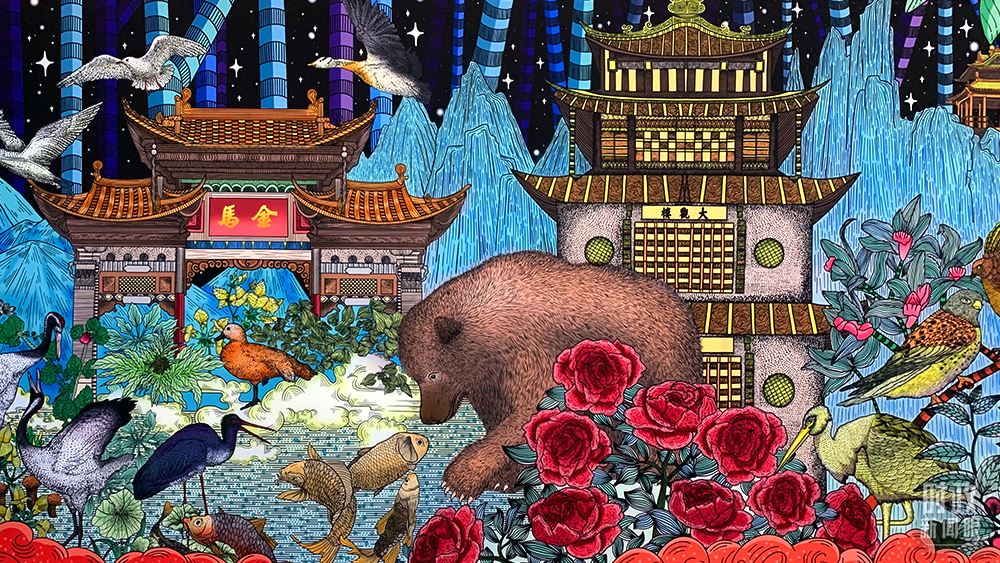 △會展中心,“生物多樣性”主題壁畫。(總臺央視記者范一鳴拍攝)