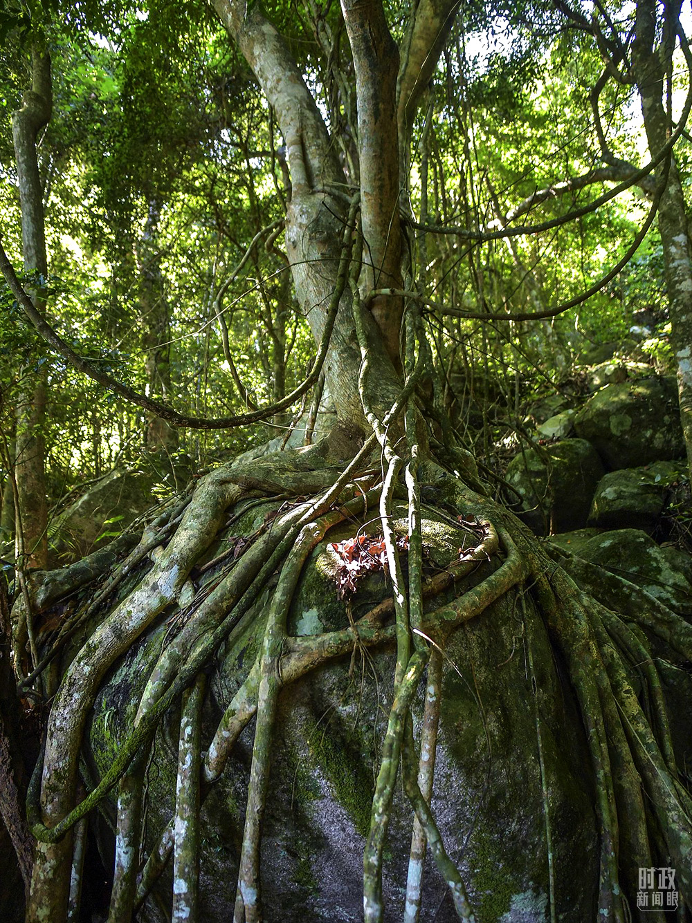 △海南霸王嶺自然保護區,熱帶雨林中的“根抱石”現象。(圖/視覺中國)