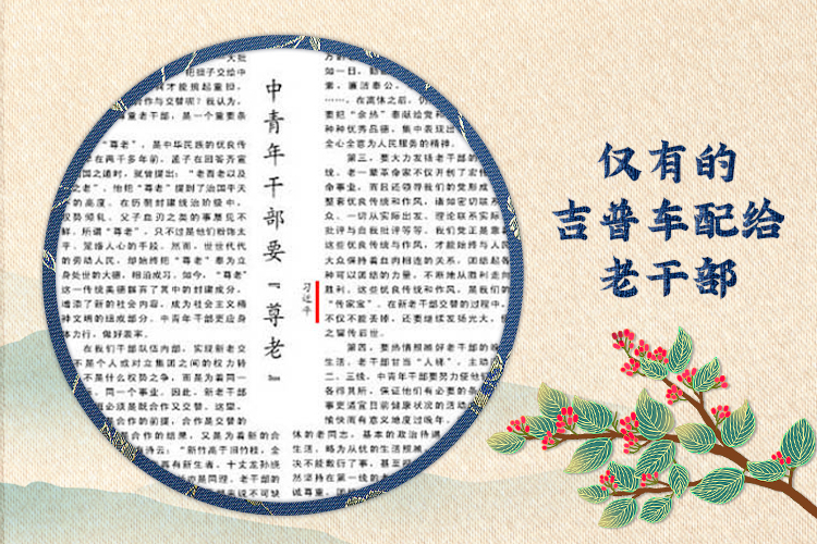 習近平在正定任職時,經常騎著一輛“二八”式自行車下鄉調研,卻把正定縣委僅有的一輛212吉普車配給老干部使用。老干部沒有活動場所,他就把縣委和縣政府合用的大會議室騰出來,改成老干部娛樂室。為照顧好老干部的身體,在習近平的主導下,正定實施了老干部看病優先就診、開設老干部病房、老干部醫藥費及時報銷等一系列措施,解決了老干部生活中的諸多困難。