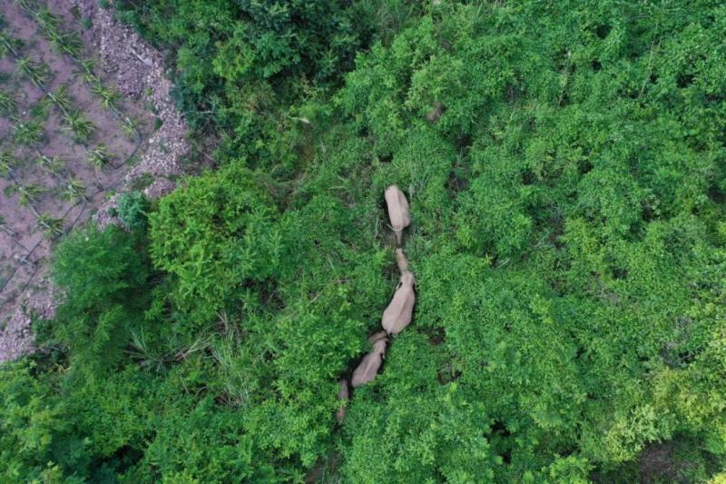 △2021年5月20日,野象群北上途經云南石屏北部山區,穿越山地叢林及火龍果地。