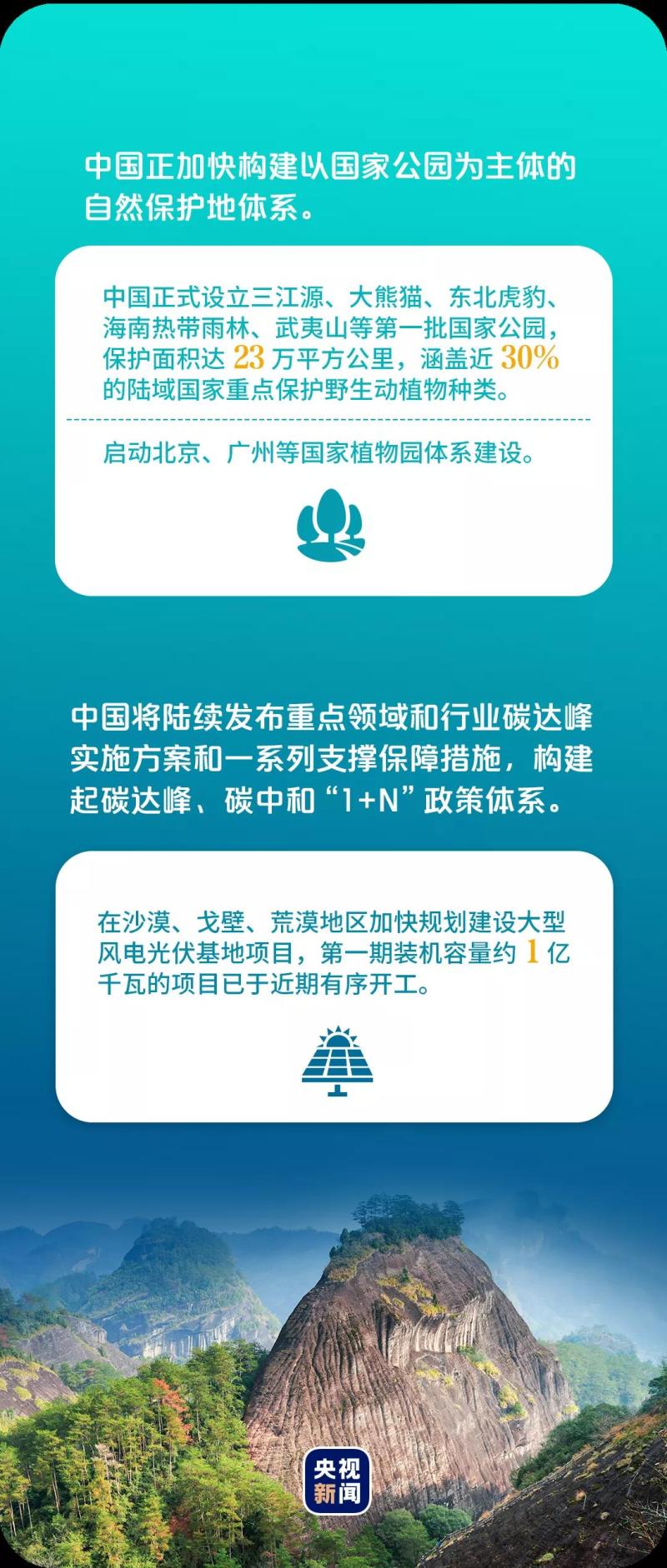在視頻講話中,習近平宣布了中國下一步舉措,包括正式設立第一批國家公園。